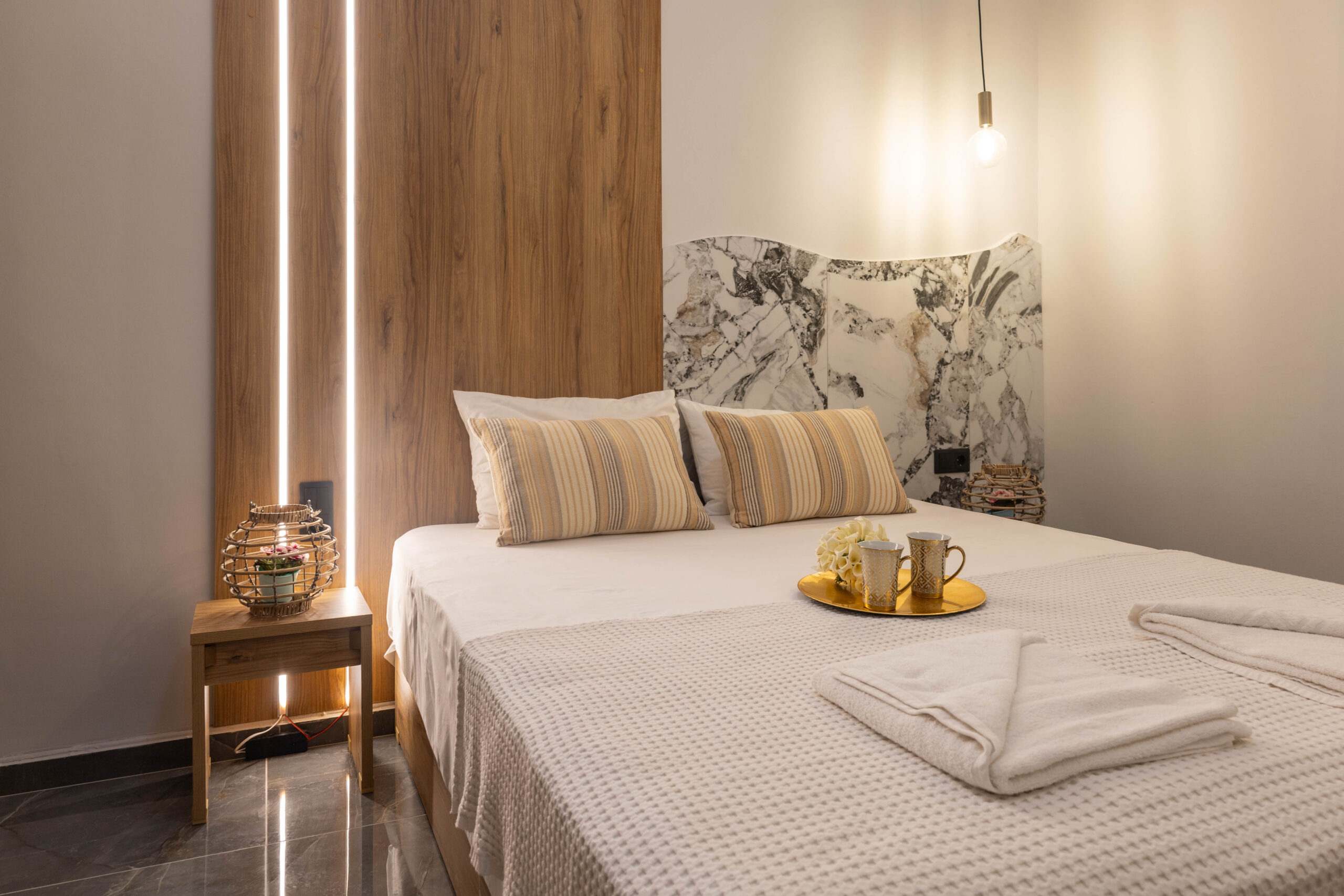 Αφεθείτε στην εμπειρία ενός εξαιρετικά άνετου διπλού κρεβατιού, επιλεγμένου με φροντίδα για να προσφέρει ποιοτικό ύπνο και αίσθηση πραγματικής ξεκούρασης.